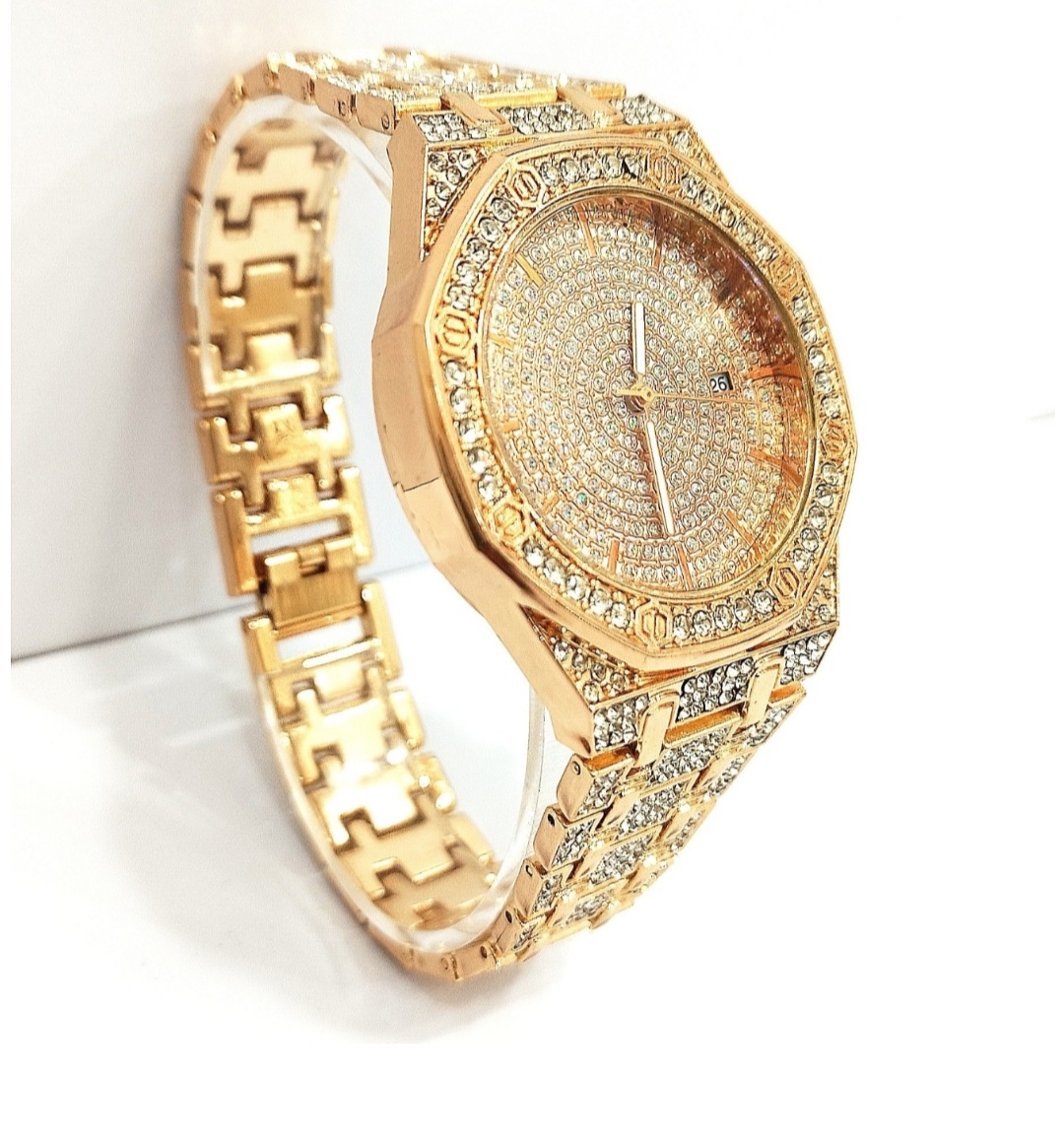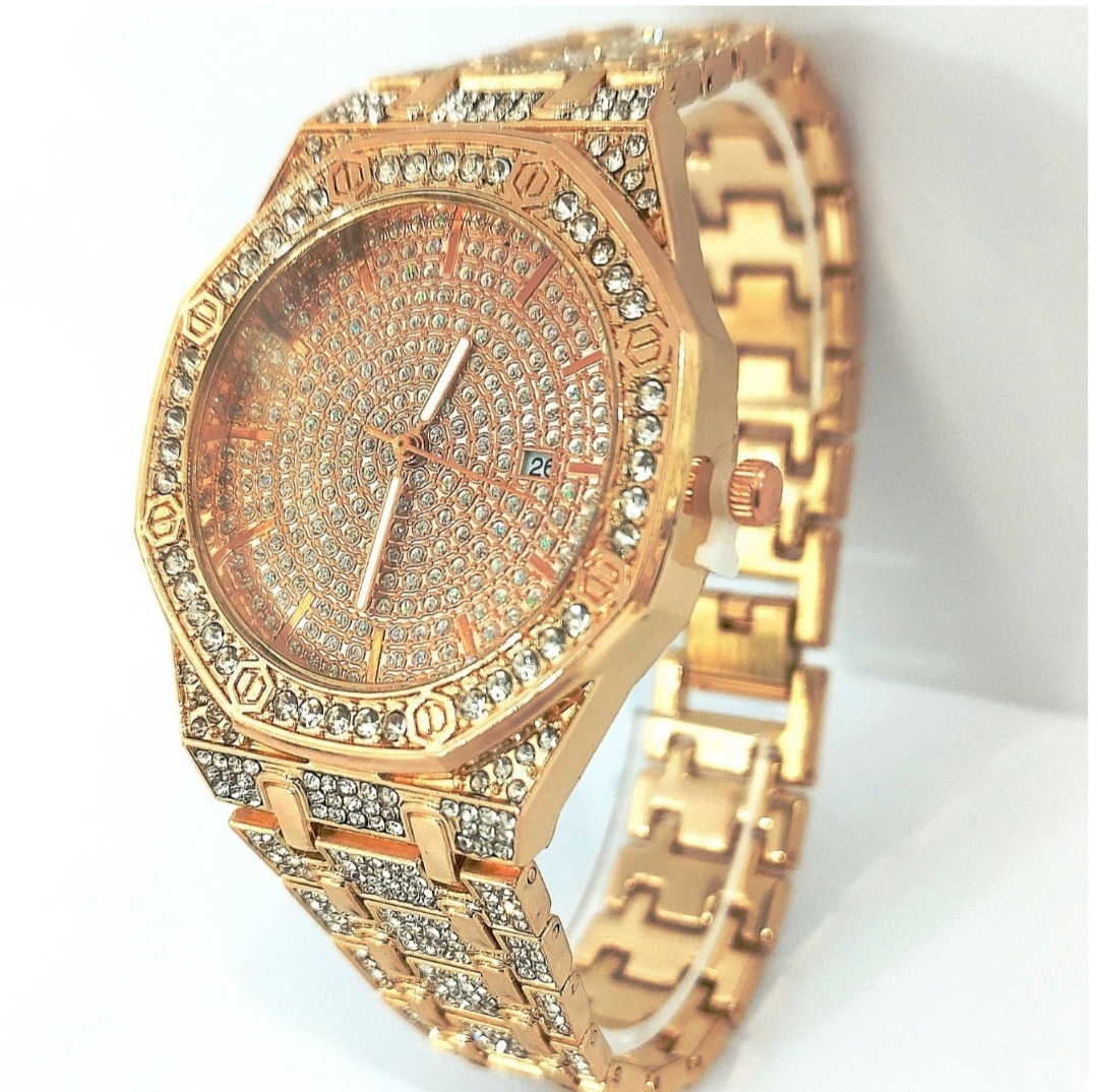 ساعت نگین دار دخترانه و پسرانه،دارای روزشمار،فول نگین،رنگ رزگلد