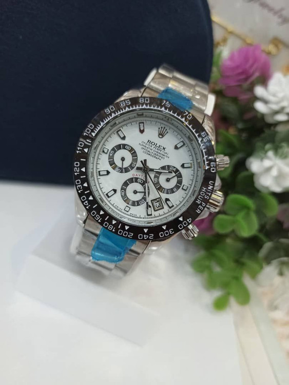 ساعت مچی مردانه سه موتور فعال کرنوگراف بند نقره ای صفحه سفید برند رولکس ROLEX، تکی به قیمت عمده