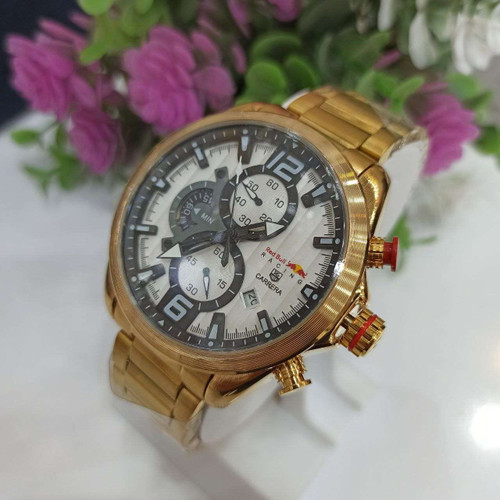 ساعت مچی مردانه سه موتور فعال کرنوگراف بند مشکی صفحه سفید دور طلایی برند کارتیر CARTIER،تکی به قیمت عمده۱٬۲۸۰٬۰۰۰ تومان